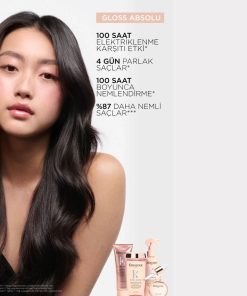 LIVE YOUR LIFE IN GLOSS *Şampuan + Saç kremi + Spray uygulanması sonrası instrumental test **Şampuan + Saç kremi + Yağ uygulanması sonrası instrumental test ***Şampuan + Saç kremi + Spray + Yağ uygulanması sonrası instrumental test Boy:250 ml Cilt Tipi:Elektriklenmeye yatkın uzun saçlar için Kullanma Amacı:Parlaklık ve Elektirklenme Karşıtı Cinsiyet:UNISEX Yaş Grubu:UNISEX