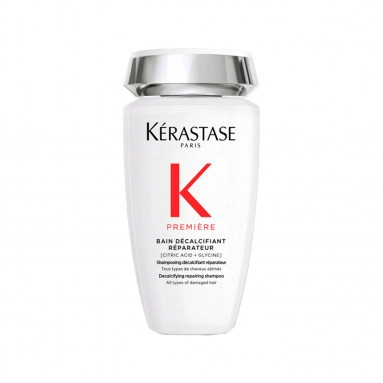 - Beyaz kremsi dokudan lüks bir köpük deneyimi yaratan Kérastase Première Bain Décalcifiant yıpranmış saçlara özel onarıcı şampuan, saçta sudan kaynaklanan kalsiyum birikimine karşı çift etkili bir onarıcı bakım sunar.