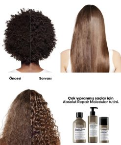 - Nasıl Uygulanır? Absolut Repair Molecular Şampuan ve Absolut Repair Molecular Durulanan Serumu kullandıktan sonra havluyla nemi alınmış saça uygulayın